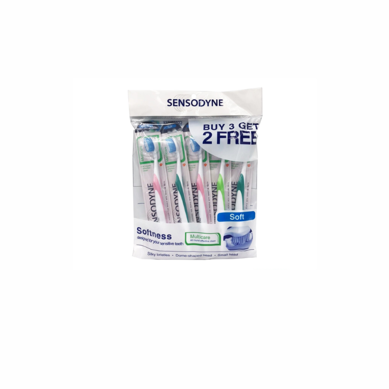 Sensodyne Multicare toothbrush has been specially designed with its silky bristle to gently cleans teeth. Itโs small angled head is specially designed to provide all round effective cleaning, even in hard to reach areas.* For effective cleaning of your teeth and gums we recommend twice daily brushing with a fluoride toothpaste and Sensodyne Multicare toothbrush.