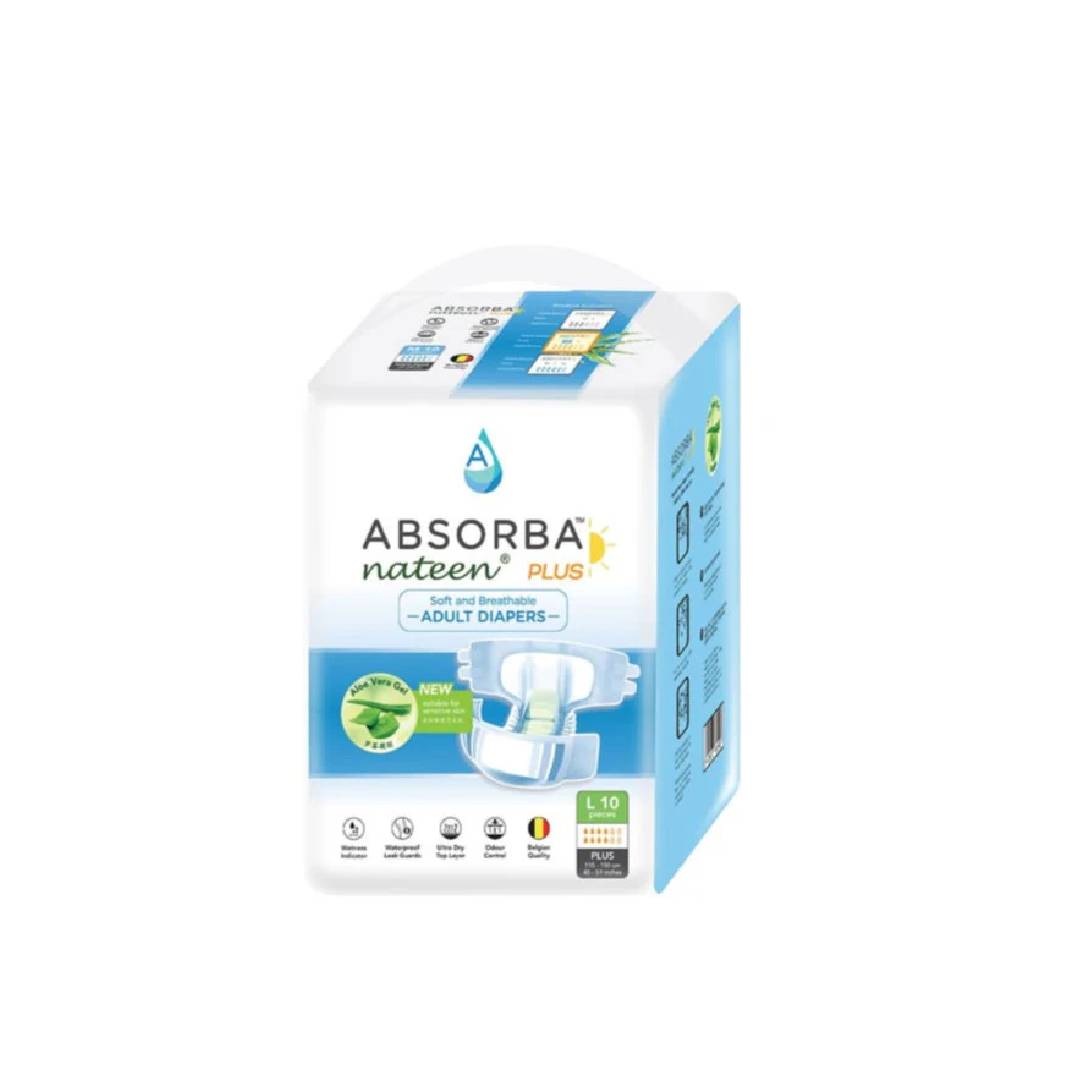 Absorba Nateen Plus Adult Diapers feature aloe vera gel and leakage protection to provide top-quality comfort.