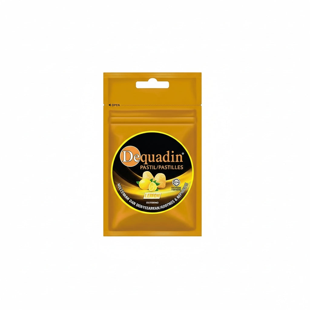 Dequadin Pastilles Lemon are medicated lozenges designed to relieve minor throat irritation and soreness while providing a refreshing lemon flavor. The 20g pack is compact and perfect for carrying on-the-go.