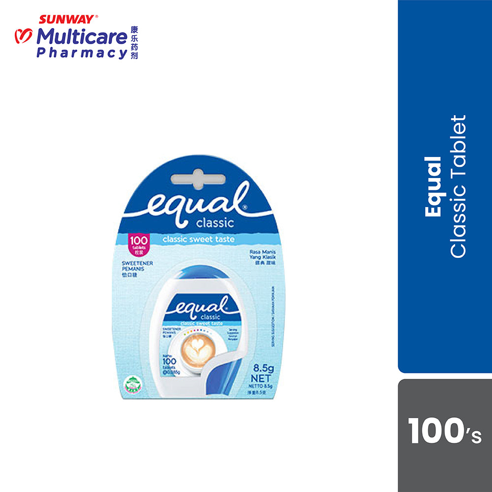1 Equal® Tablet (0.3 kcal) is equivalent in sweetness to 1 level teaspoon of sugar (16 kcal).