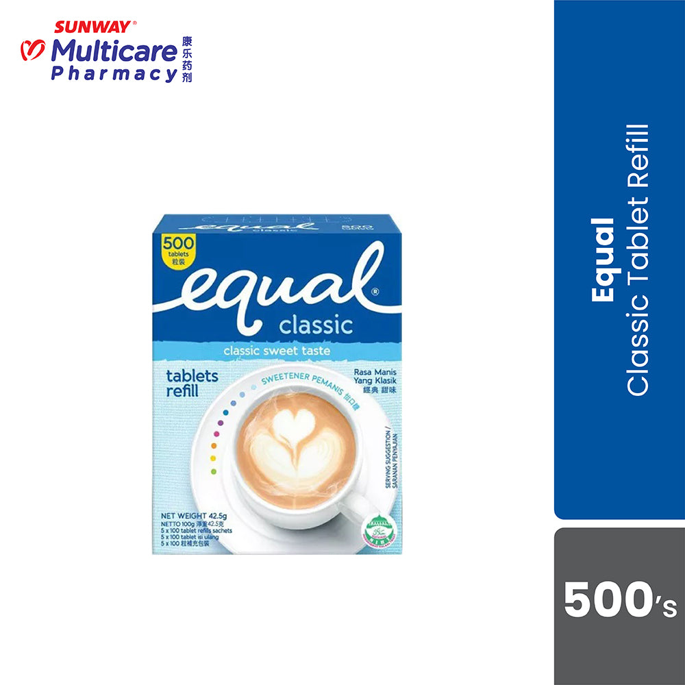 Equal Sweetener is a great way to enjoy the taste of sugar without all of the calories of sugar. The key ingredients in Equal contains protein components like those found naturally in everyday foods such as meats, dairy products, and grains. Use Equal to sweeten your tea or coffee or sprinkle over cereal or fruit. Each zero-calorie tablet quickly dissolves in hot or cold drinks, and sweetens like two teaspoons of sugar. A simple way to cut down on sugar and still enjoy the sweet things in life. Features: Equal tablet is a great alternative for sweetening your tea or coffee.