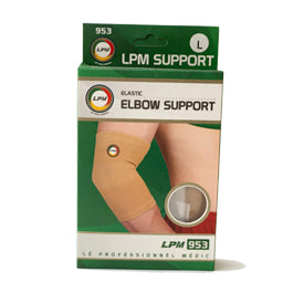 The LPM Elbow Support is suitable for most sports, athletic activities, and everyday use. Recommended for tennis and golf elbow. Provides firm support for weak, swollen or painful elbows. Aids conditions arising from fatigue or overstrain. LPM Elbow Supports are designed to conform naturally to the contours of the elbow, so they are comfortable to wear. Won't slip or ride up.