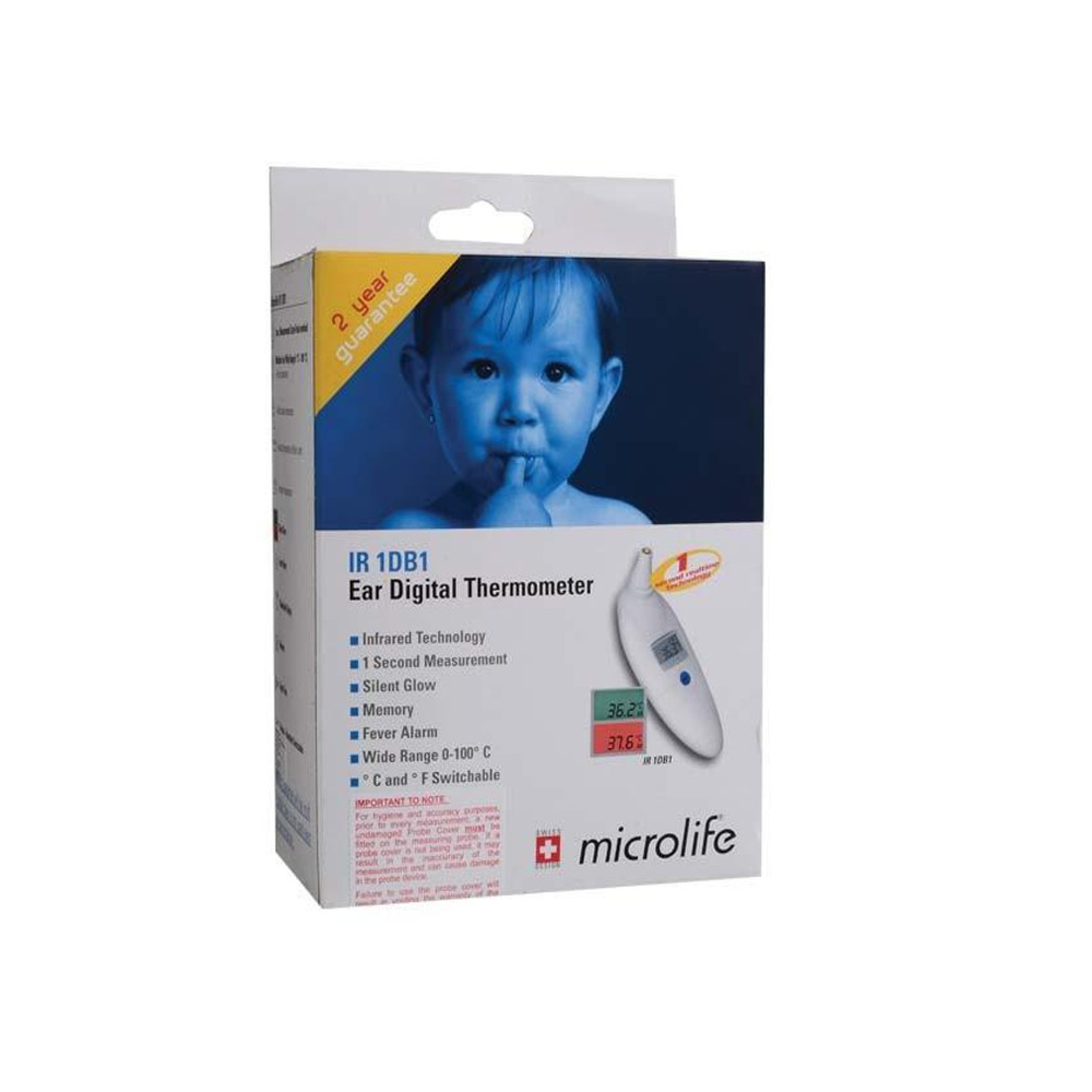 Microlife Ear Digital Thermometer (IR 1DB1) - Microlife's infrared Thermometers offer the most comfortable way to measure body temperature. It allows a temperature measurement in 1 seconds with Fever Alarm and Silent Glow indication.