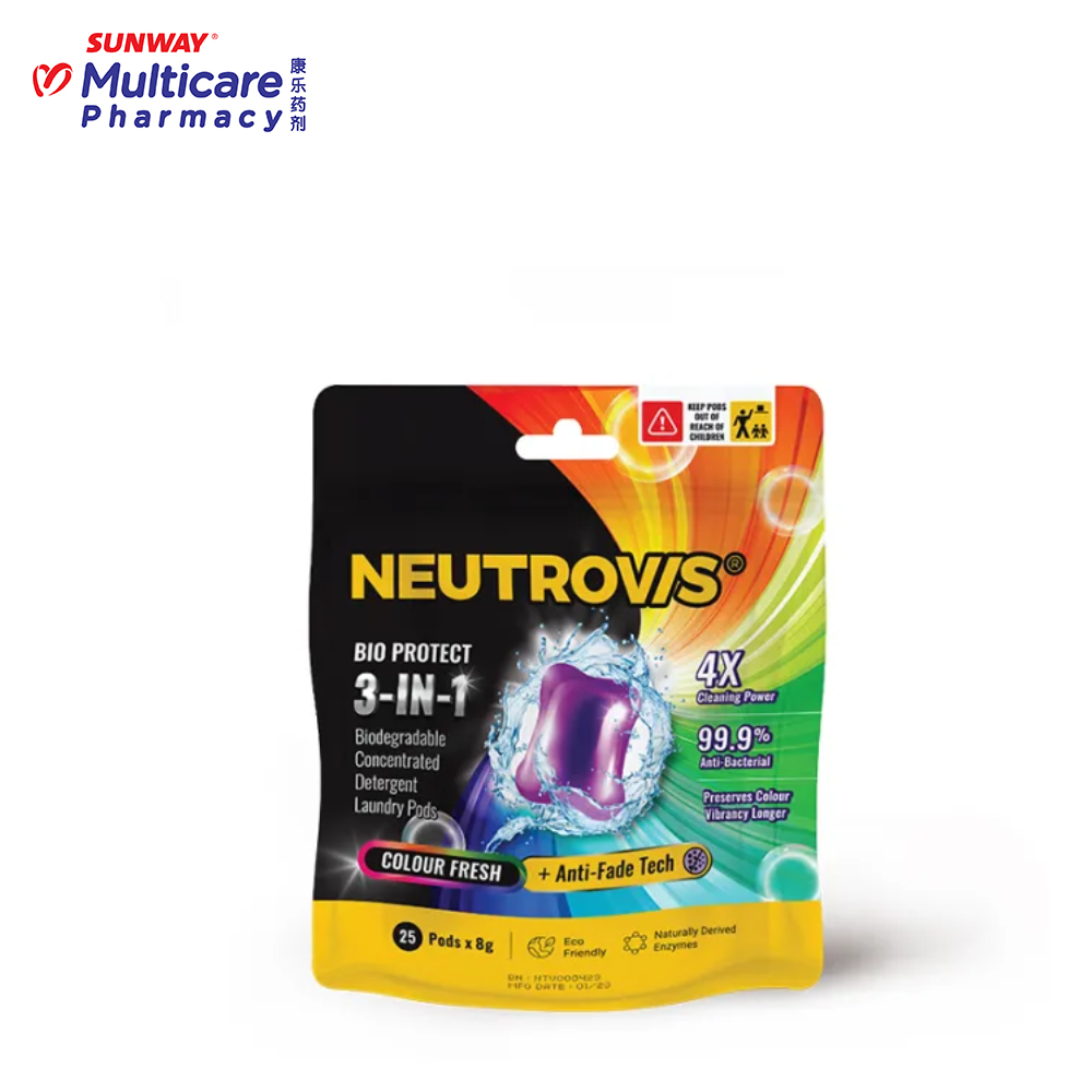 Neutrovis 3 In 1 Biodegradable Concentrated Detergent Laundry Pods - Colour Fresh 25'S