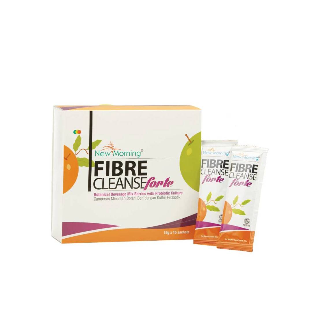 New Morning Fibre Cleanse Forte is formulated with a proprietary blend of soluble and insoluble fibers, Moringa Oleifera Extract, 3 billion cfu of live probioitics cultures, 22 natural extratcs of fruits and vegetables antioxidants, along with enzymes and greens.
