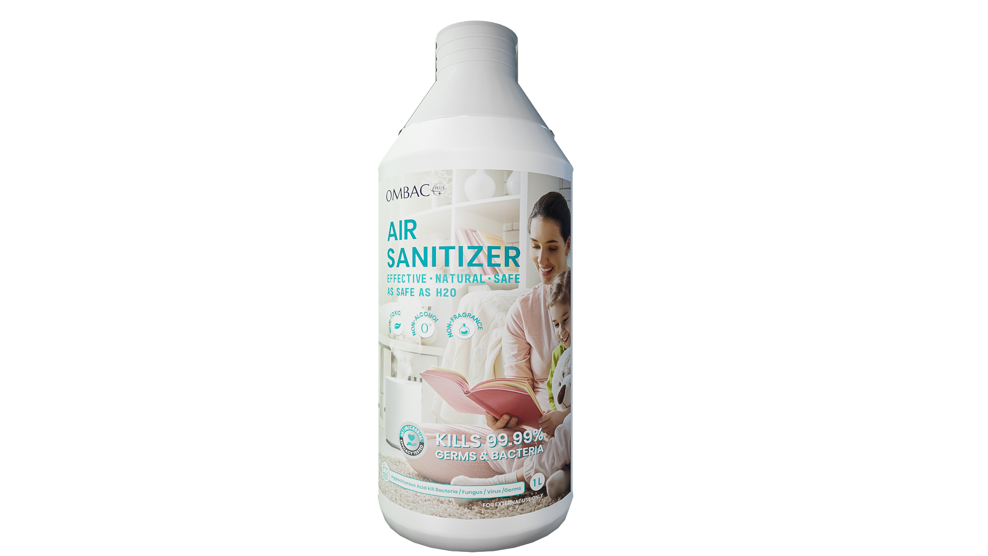 - Diluted Ombac+ Ultron Air Sanitizer can be dispensed through air humidifier or disinfectant tunnels to eliminate airborne microbes effectively.