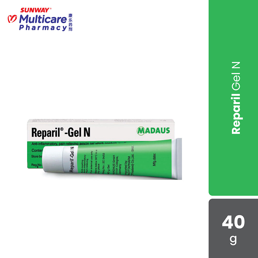 Reparil Gel N is a special preparation with a triple effect: it reduces swelling, has an anti-inflammatory effect and relieves pain. Aescin in the form penetrating into the skin prevents accumulation of water in the tissue and alleviates tissue swelling. Local swelling, which causes the feeling of heaviness and pain from tension, is rapidly eased. Inflammatory processes are effectively suppressed. Diethylamine salicylate, a compound of salicylic acid, promotes its anti-inflammatory effect, it has an extraordinary deep and pain-relieving effect. Moreover,