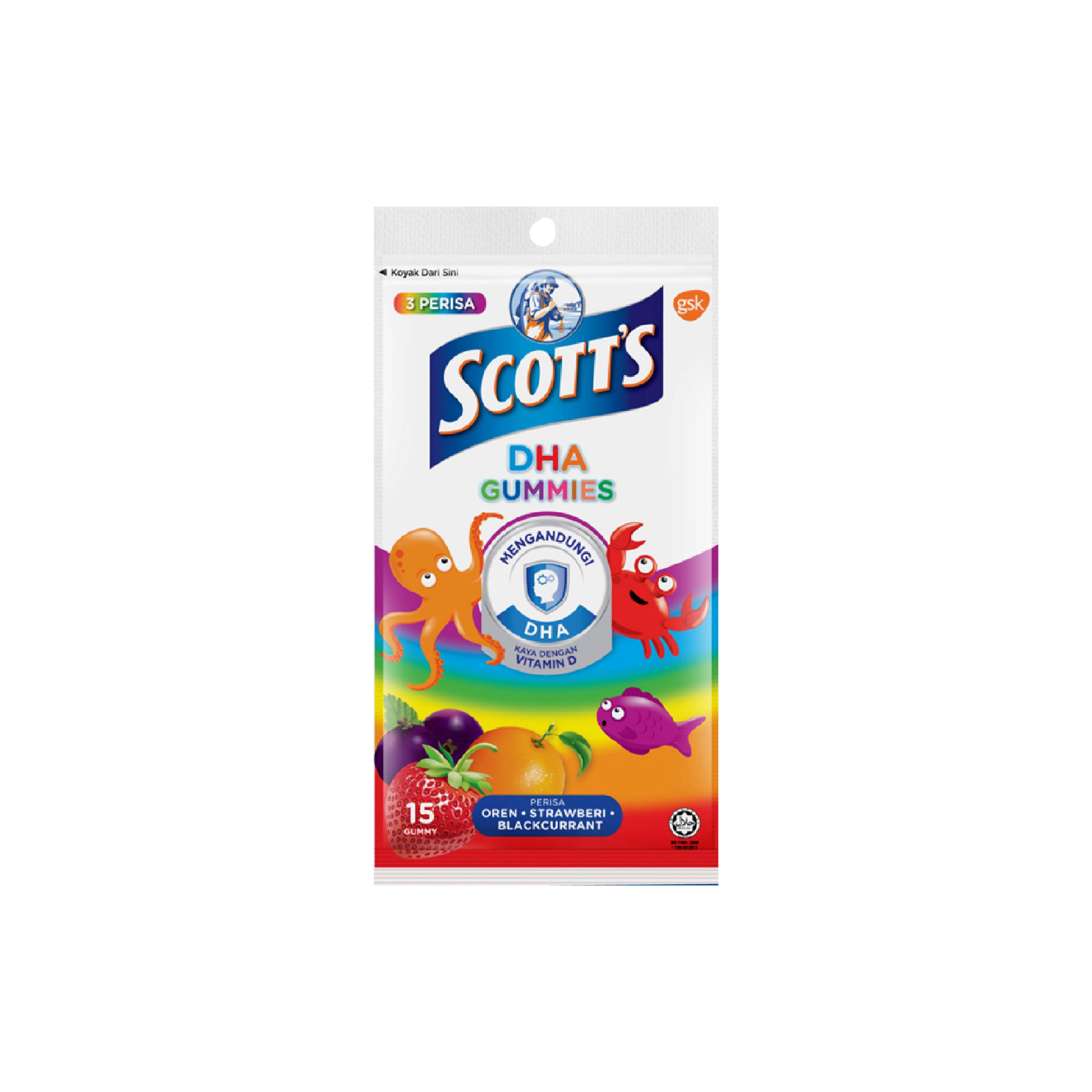 Scott's DHA Gummies Assorted Flavours 15s is a great-tasting supplement that contains Omega 3 DHA and vitamin D for your child.