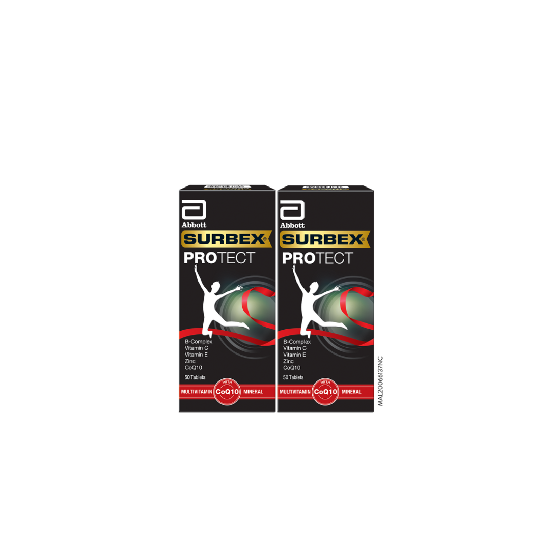 "SURBEX ®Protect is a bi-layer product packed with Vitamin B-complex, as much as 750mg Vitamin C, 15mg Zinc, Vitamin E and 30mg Coenzyme Q10. SURBEX ®Protect helps the body to utlize energy through the metablism of carbohydrate, protein and fat and overall maintenance of good health to stay active.