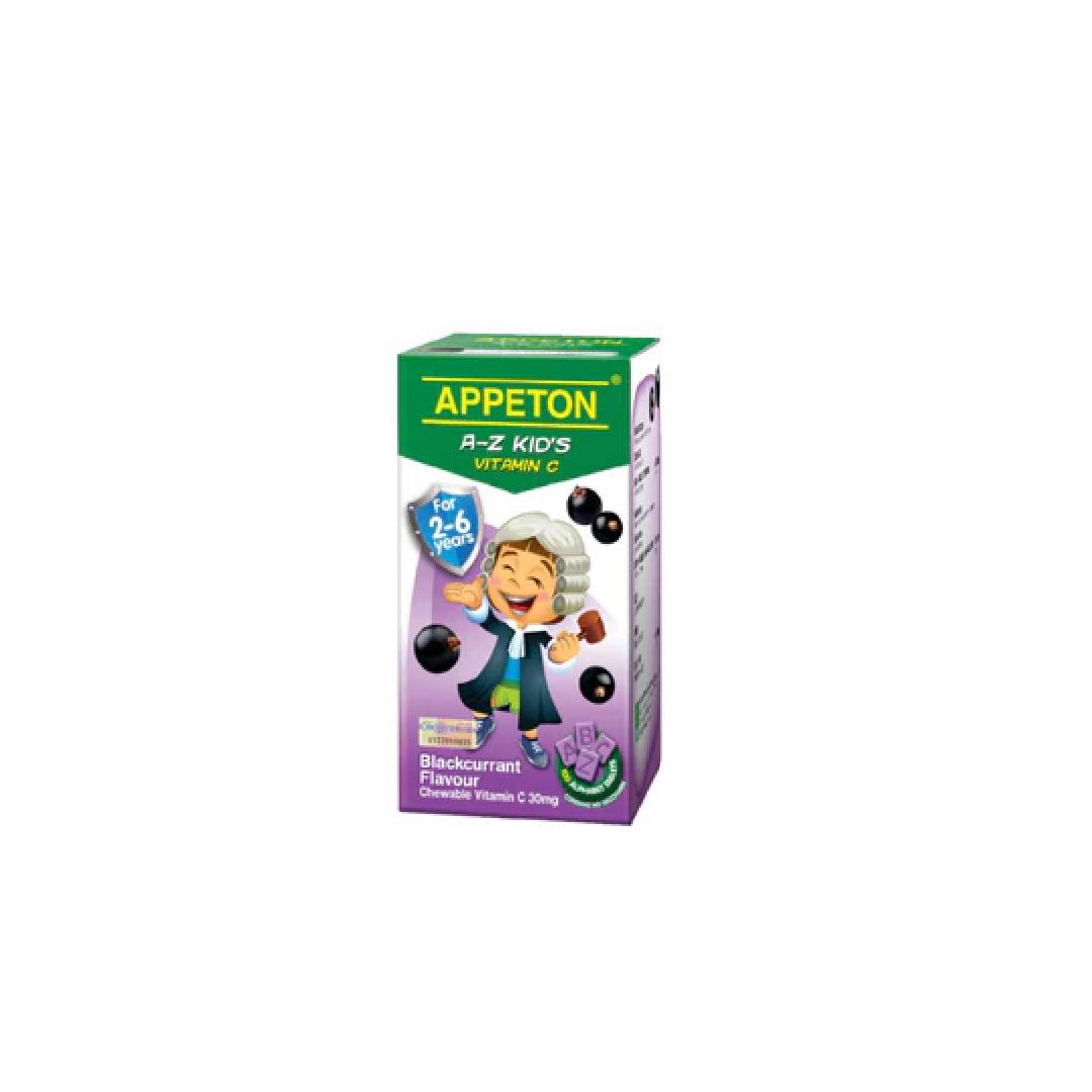 Appeton A-Z Kid's Vitamin C Tablets strengthens the body and promotes health. It is a chewable tablet specially formulated for children 2-6 years old. Appeton A-Z Kid's Vitamin C comes in alphabets shapes to enable fun learning. It is available in 3 flavours which are orange, strawberry and blackcurrant.