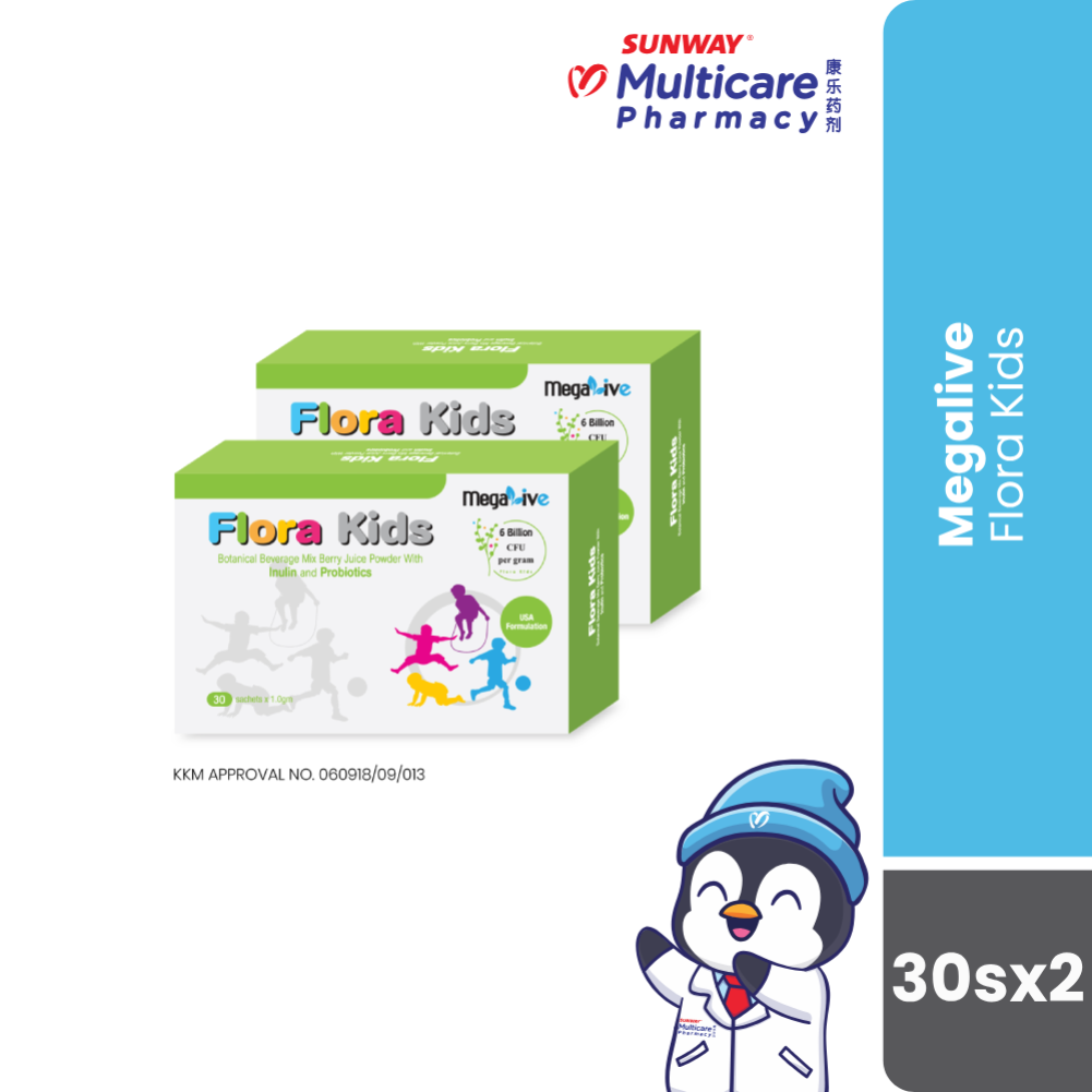 MegaLive Flora Kids can help to reinstate the balance of good bacteria and bad bacteria in children’s digestive systems. Additional probiotic supplements can help to support the gut lining, which is the protective barrier against foreign invaders, by building healthy microflora. MegaLive Flora Kids is genetically modified organism-free and provides 6 billion CFU of probiotics per serving.