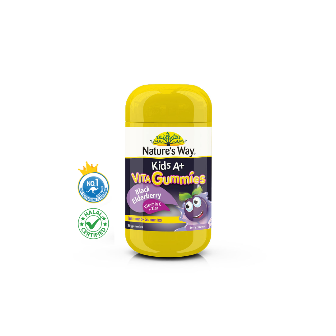 Nature’s Way KA+ Black Elderberry gummies is fortified with Black Elderberry extract, Vitamin C and Zinc to help boost immunity and reduce risk of infections. A delicious and easy way to boost kid’s immune system which are naturally weaker than adults.