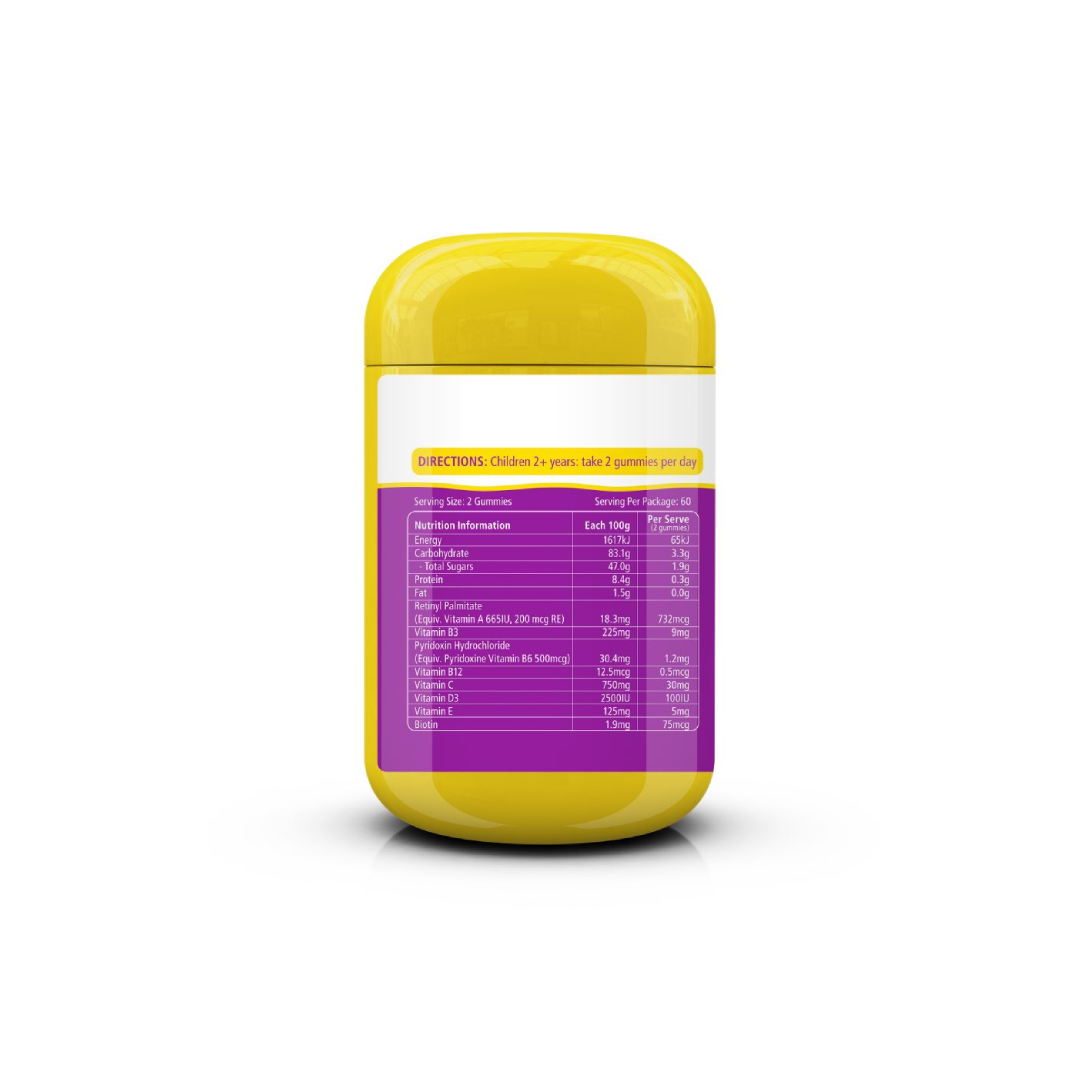 - Each gummy contains 8 types of vitamin and 5 types of veggies to promote a nutritionally balanced diet.