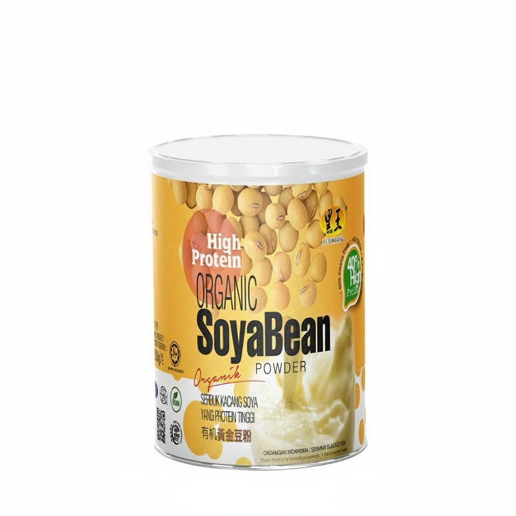 Hei Hwang Organic High Protein Soya Bean Powder is made from selected premium quality of organic soya bean. The skins of soy beans are removed peeled off before processing. It is pure in taste and fine in texture, making it good for smooth absorption and easy digestion. It has very rich soy taste and smoother in texture. Soy bean is a good source of plant protein and contains all the necessary amino acid in protein and easily absorbed. High protein, especially plant source protein, is vital for muscle growth and body daily function.