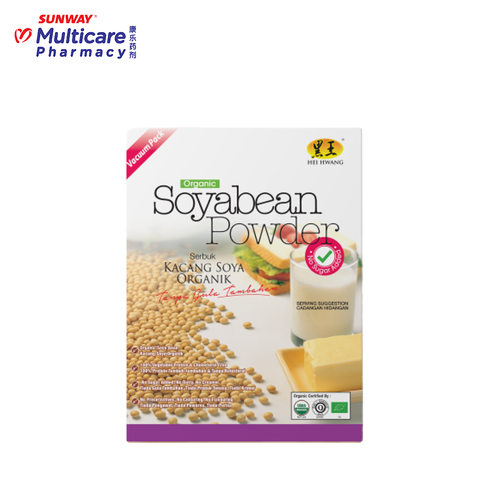 Hei Hwang Instant Soyabean Powder is made of the soyabean from unpolluted area of North Eastern China. The Hei Hwang Instant Soyabean Powder is manufactured by an advanced process using steaming, freeze drying & then grinding the whole bean into powder. With this special process, the nutrition & fibre contained in the Hei Hwang Instant Soyabean Powder can be easily absorbed by the body. It is indeed an ideal health food for people of all ages & vegetarian.