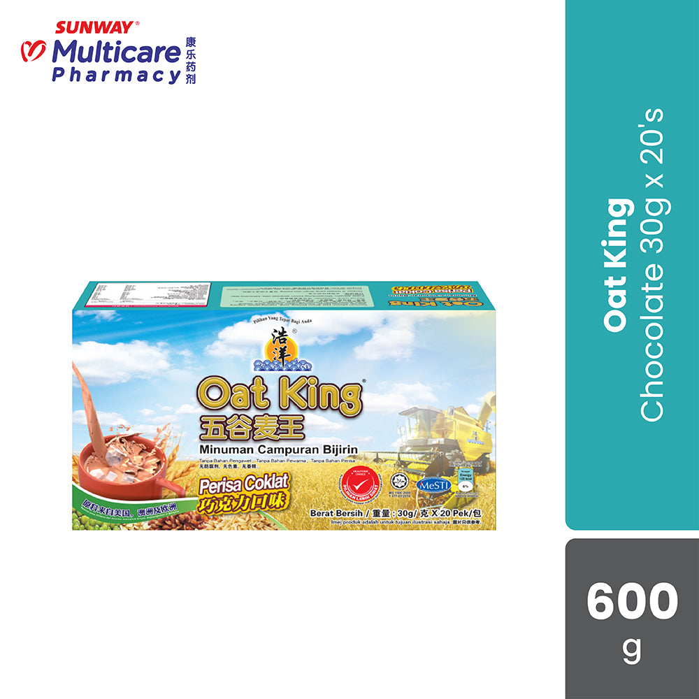 - Oat King with chocolate flavour which selected the finest cocoa with the combination of 24 types of whole grains, with low sugar content provides ultimate taste that makes you a delicious lingering after tasted. It also contains a variety of minerals necessary to achieve good nutrition, including calcium, phosphorus, magnesium, iron, zinc and copper. Each of these minerals plays an important role in many biological functions such as growth, bone formation, metabolism, and the transport of oxygen in the blood. Each 100 grams of Oat King Chocolate contains 75.3 grams of carbohydrate, about 8.8 grams of fat, and about 12 grams of protein, and also contains Magnesium, Zinc, Vitamin C, Iron and Calcium.