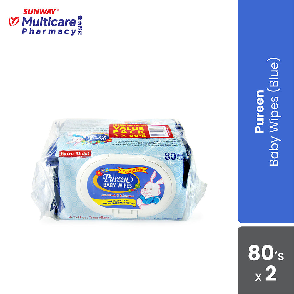 Pureen Baby Wipes 80'S X 2 (Blue)