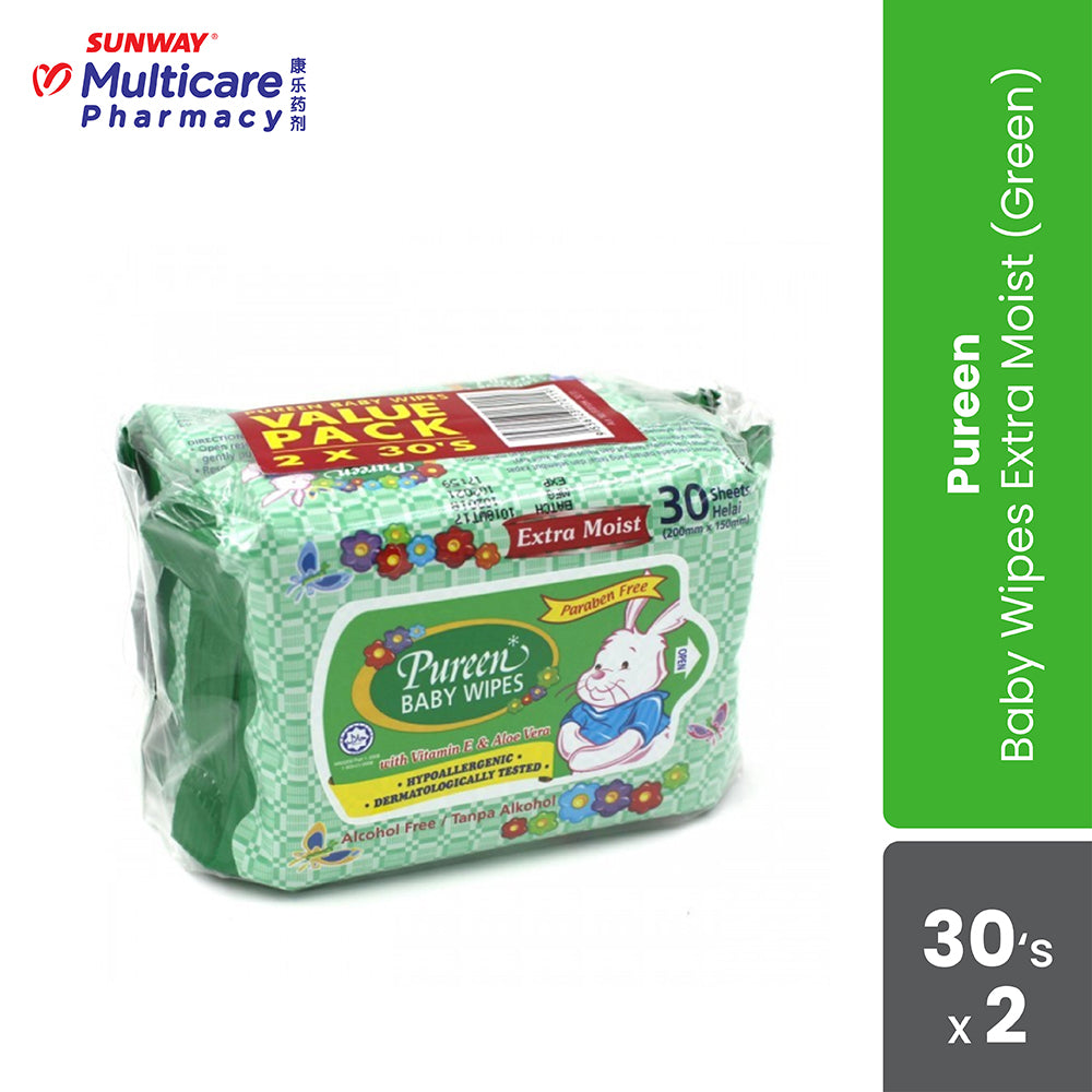 Pureen Baby Wipes Extra Moist 30'S X 2 (Green)