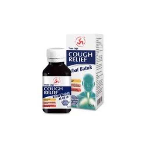 Three Legs Cough Relief is a reflex solution that helps expel phlegm that is blocking the air passage. It contains Guaifenesin, an expectorant that helps loosen phlegm and mucus in your chest and throat due to colds, making it easier to expel the phlegm orally.