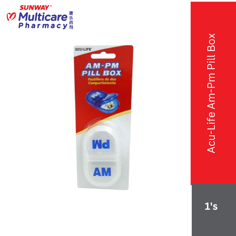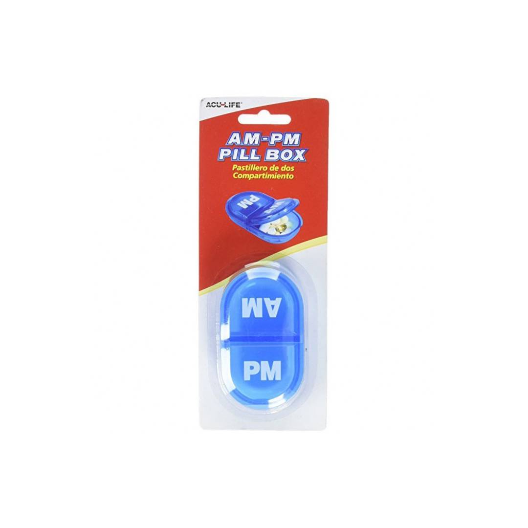- Each Two Compartment Pill Box - Morning and Afternoon Great for pocket, purse, briefcase or travel The AM-PM Pill Box has two compartments for organizing medication. Small size is great for travel.