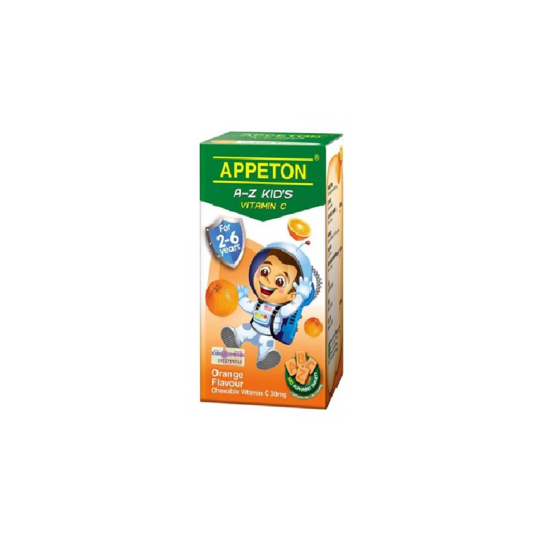 Appeton A-Z Kid's Vitamin C Tablets strengthens the body and promotes health. It is a chewable tablet specially formulated for children 2-6 years old. Appeton A-Z Kid's Vitamin C comes in alphabets shapes to enable fun learning. It is available in 3 flavours which are orange, strawberry and blackcurrant.