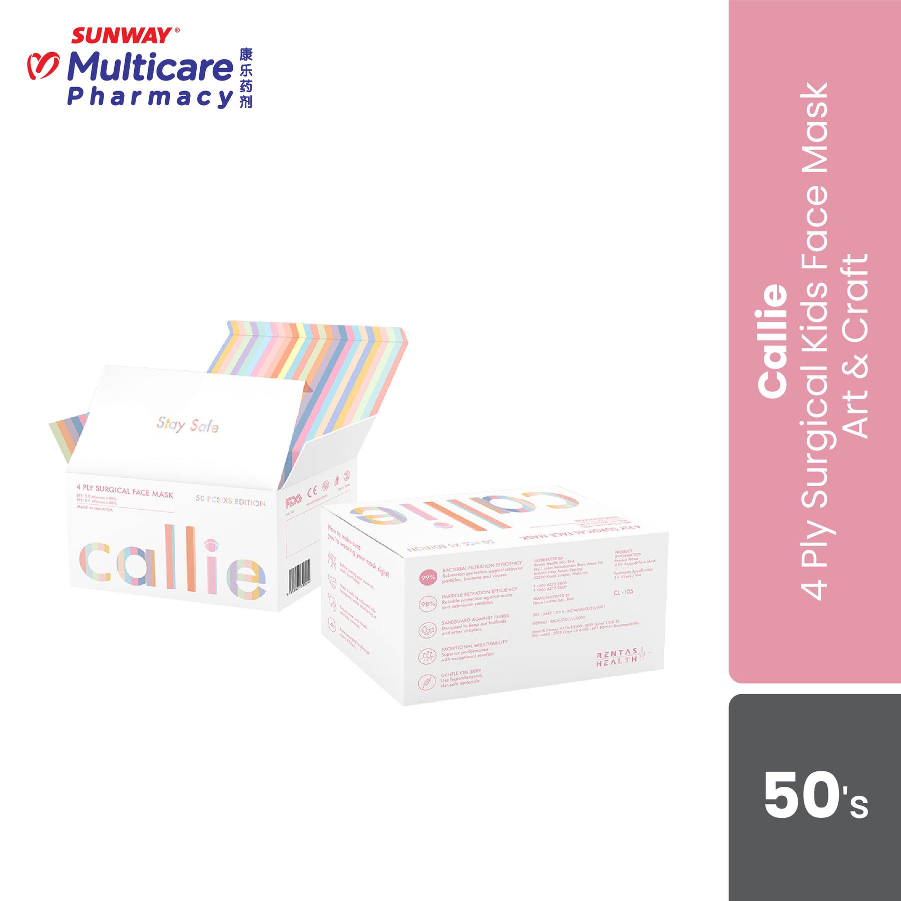 Suitable for kid Child-friendly style to ensure the little ones are #fashionablysafe! Four designs available 50 pcs of 4-ply surgical grade mask with up to 99% submicron protection Comfortable, highly-breathable design