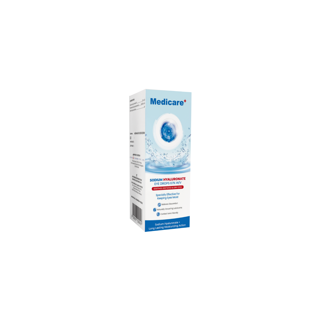 MEDICARE+ EYE DROP 0.1% 10ML is an ophthalmic solution, commonly known as eye drops, used to treat various eye conditions. The drops contain a 0.1% concentration of an active ingredient, and the bottle contains 10ml of solution. These drops are typically used to address eye infections, eye allergies, and potentially other eye-related issues.