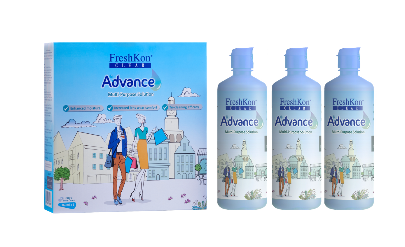 Intorducing FreshKon CLEAR Advance that comes with an exclusive advance formula! It not only keeps your contact lenses sparkly clean but also provides extra moisture that your contact lenses need to give you a better lens wear experience.
