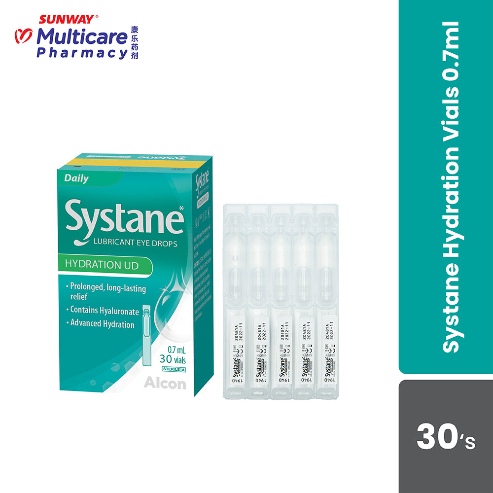 Systane Hydration UD Lubricant Eye Drops entrap water to promote greater hydration, lubrication and provide prolonged, long lasting relief. It also allows restoration of the damaged cells in the ocular surface.