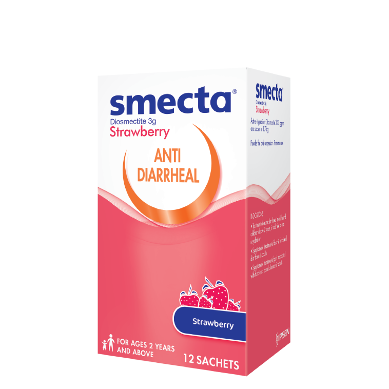 Smecta® 3g Strawberry is a sachet of powder for oral suspension. Each box contains 12 sachets.