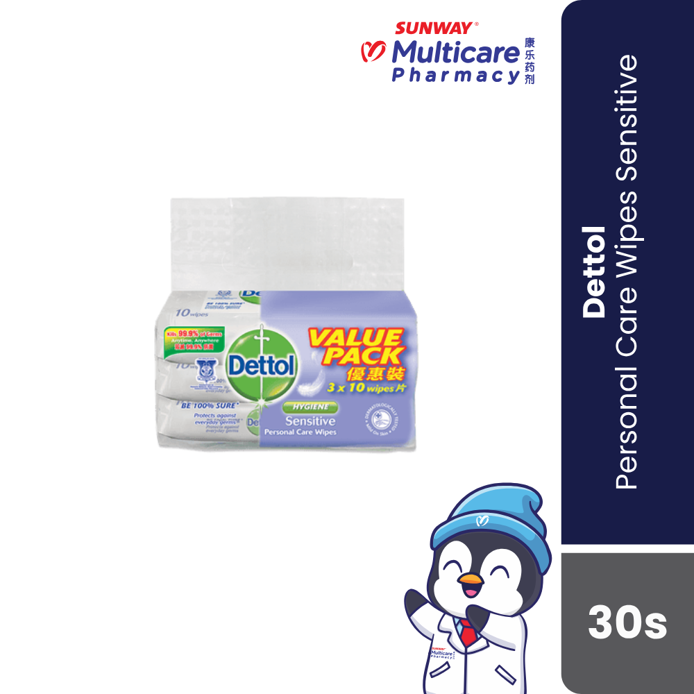 Dettol Sensitive Personal Care Products Wipes 10'Sx3