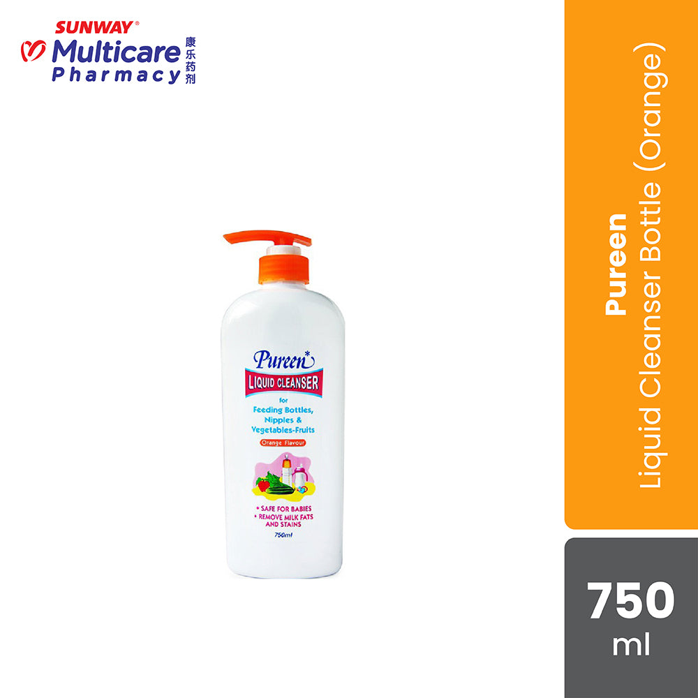 Pureen Liquid Cleanser has been carefully formulated with plant based surfactants which are safe for cleaning baby accessories (e.g. feeding bottles, teats, pacifiers, toys) as well as fruits and vegetables. This mild and gentle formulation is effective in removing milk fats and stains. Orangeย Flavour Liquid Cleanser