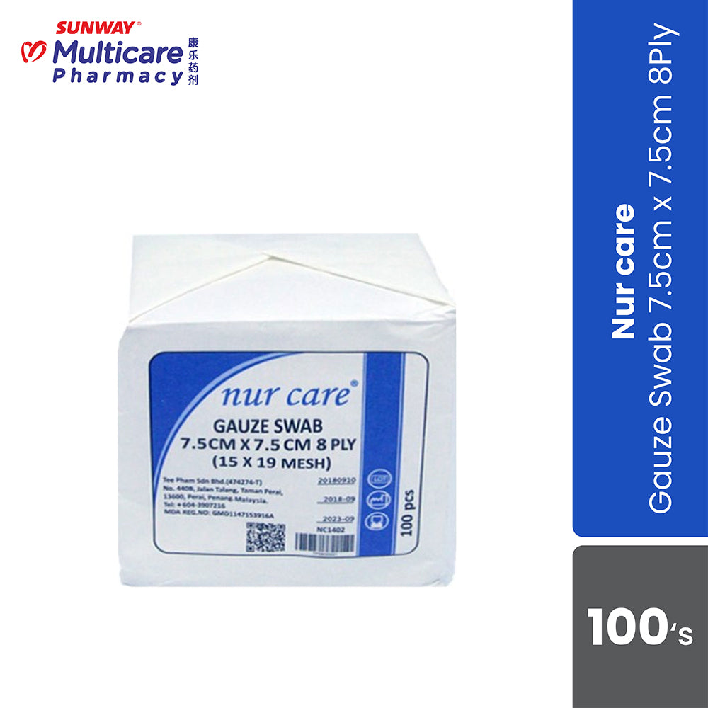 Nurcare Gauze Swab 7.5Cmx7.5Cm 8Ply 100'S