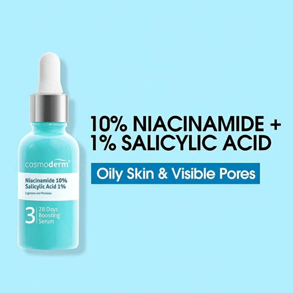 A powerful dual-action serum combining 10% Niacinamide with 1% Salicylic Acid (BHA) to help reduce acne, fade dark spots, control excess oil, and refine pores. The lightweight texture absorbs quickly without feeling sticky — ideal for oily, combination, and acne-prone skin.