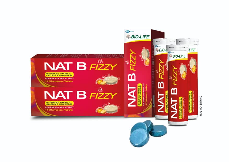 Nat B Fizzy contains high strength of vitamin Bs and C that replenish the daily nutrient requirement in effervescent form.