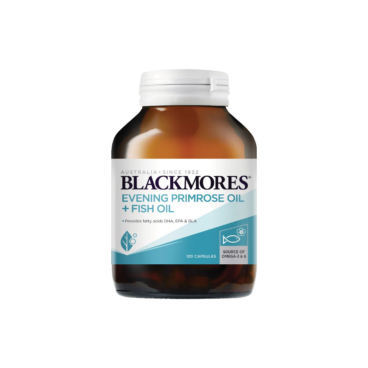 Blackmores Evening Primrose Oil + Fish Oil contains omega-3 and omega-6 essential fatty acids, which are important for the structure and function of cell membranes and growth of skin and hair. Halal certified.