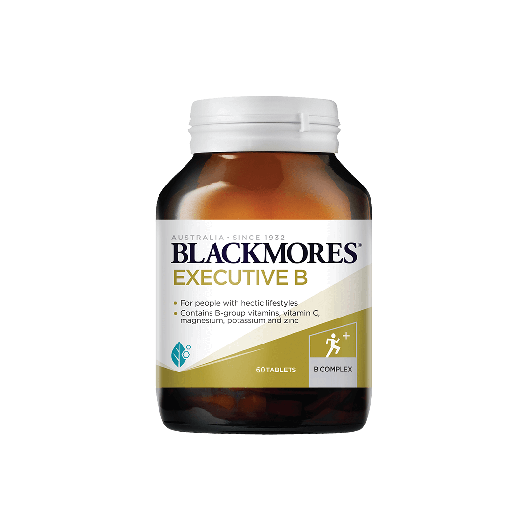 Blackmores Executive B ialah kombinasi vitamin-vitamin kumpulan B serta zat galian magnesium dan zink yang dirumus khas - ini merupakan nutrien-nutrien penting untuk memenuhi keperluan harian individu yang sentiasa sibuk. Rumusan ini mudah diambil sekali sehari, ia sesuai untuk mereka yang bergaya hidup tergesa-gesa.
