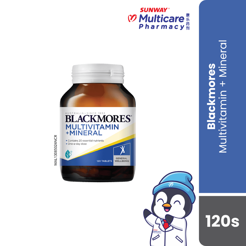 Blackmores Multivitamins and Minerals contains essential vitamins and minerals that help in the maintenance of good health. Contains no added yeast, gluten, wheat, milk derivatives, preservatives, artificial flavours or sweeteners. This product contains ingredients of BOVINE and FISH origin. Vitamin D3 in this product is derived from sheep wool. |