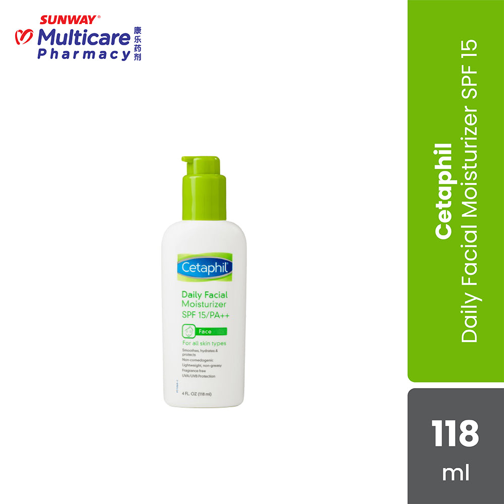 Customer from East M'sia pls choose poslaju as courier as J&t does not allow liquids to East M;sia Cetaphil daily facial moisturizer SPF 15 with Parsol® 1789 is a light, oil-free lotion specially formulated for the face. It provides moisturization and broad spectrum UVA and UVB sun protection. Ideal for all skin types and year-round daily use.