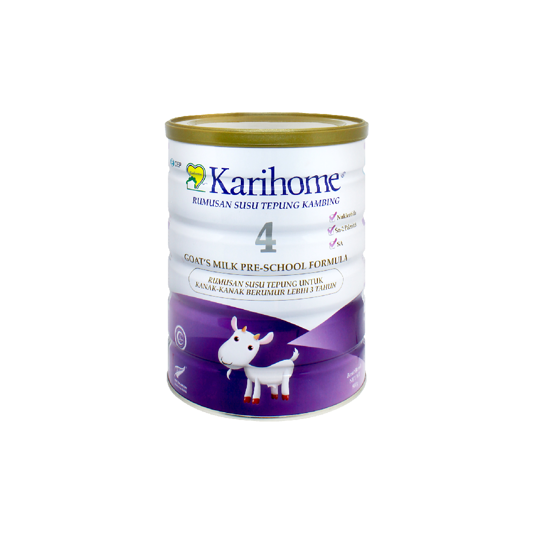 Karihome® goat milk for children is the only full range children formula with SN-2 palmitate, an unique type of milk fat. More than 11,000 researches have supported that SN-2 palmitate is scientifically proven to improve digestion and calcium absorption; reduce colic, fussiness and crying; improve sleeping quality of young kids; support healthy gut and improve immune system, and support brain and motor skill development*.