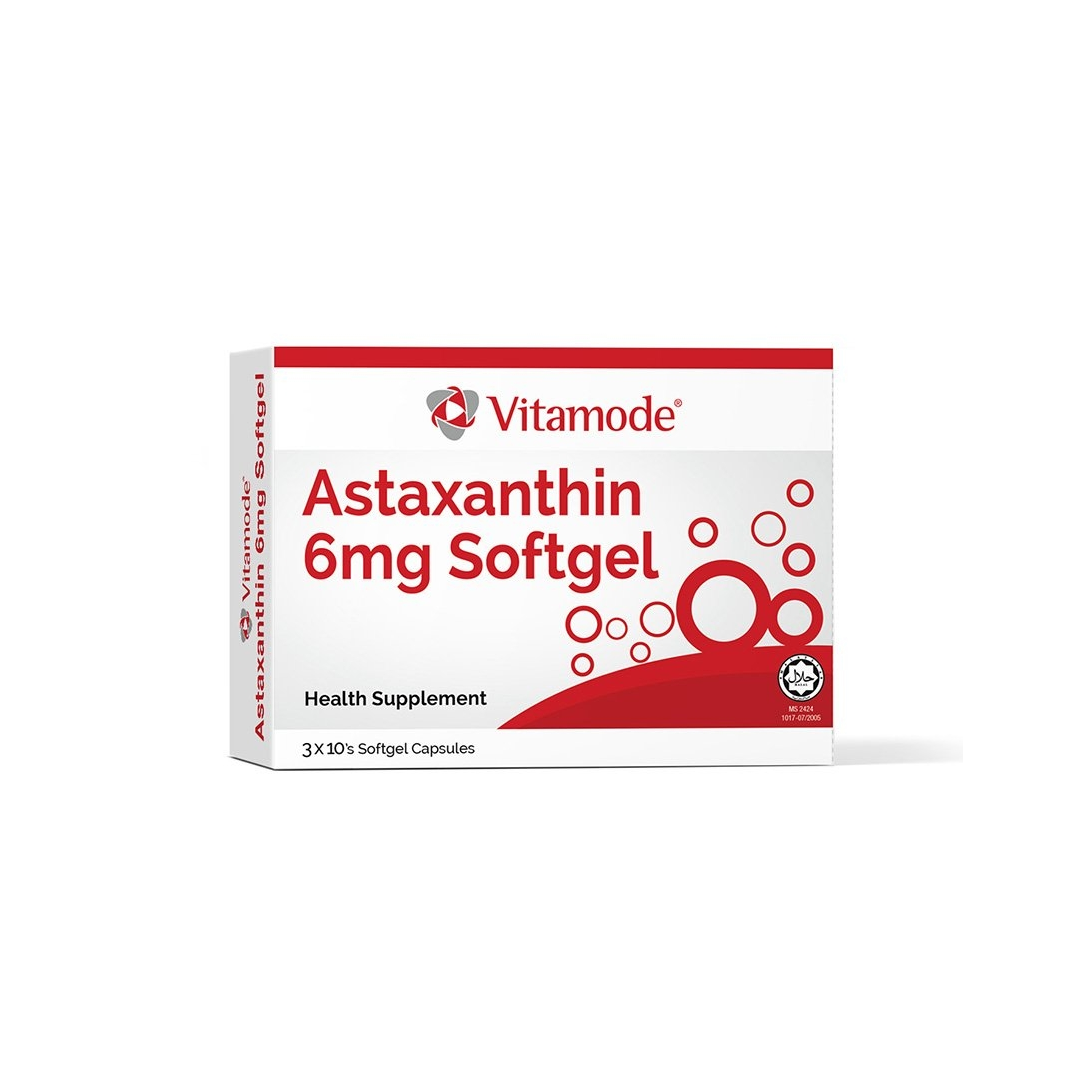 Vitamode® Astaxanthin 6mg Softgelisthe natural antioxidant that possesses antioxidant activity to guard against the effects of free radical damage on cells. Astaxanthin’s special molecular structure allows it to stretch across ourcells’ bilayer membrane, providing protection on the inside and outside of the cell, makes it a good antioxidant. With a versatile nature, it also easily incorporates into cell membranes and protects them from oxidative damage.Vitamode® Astaxanthin 6mg Softgel, your healthy aging companion!