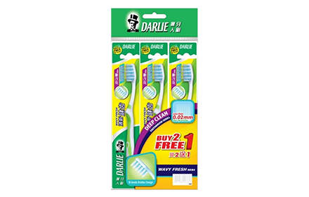 Darlie Wavy Fresh Toothbrush is made with indicator bristles reminding you to change your toothbrush regularly.