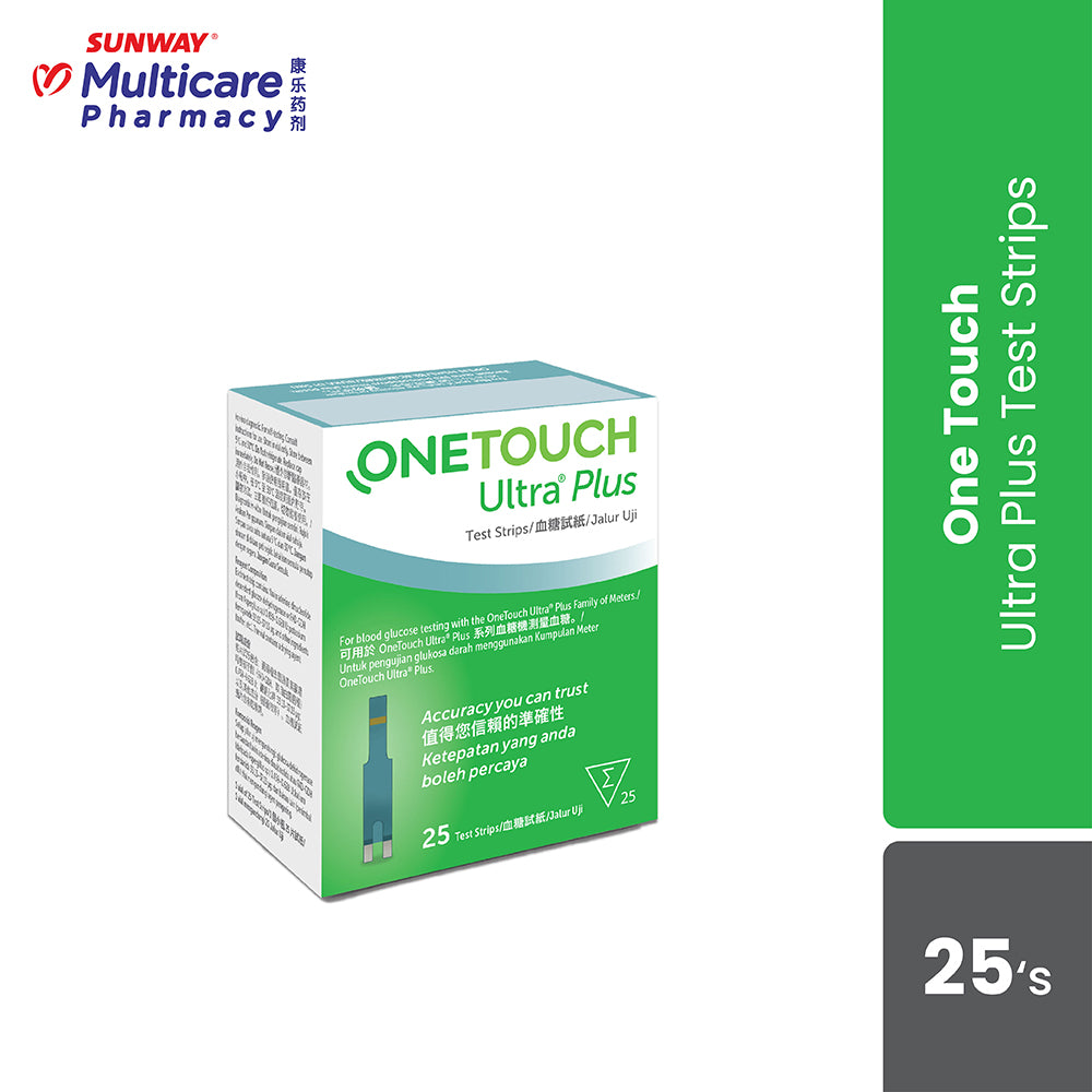 For blood glucose testing with the OneTouch Ultra Plus family of meters. In vitro diagnostic. For self-testing. Consult instructions for use. Store in vial only.Store between 5C and 30C.Do not refrigerate. Replace cap immediately. Do not reuse